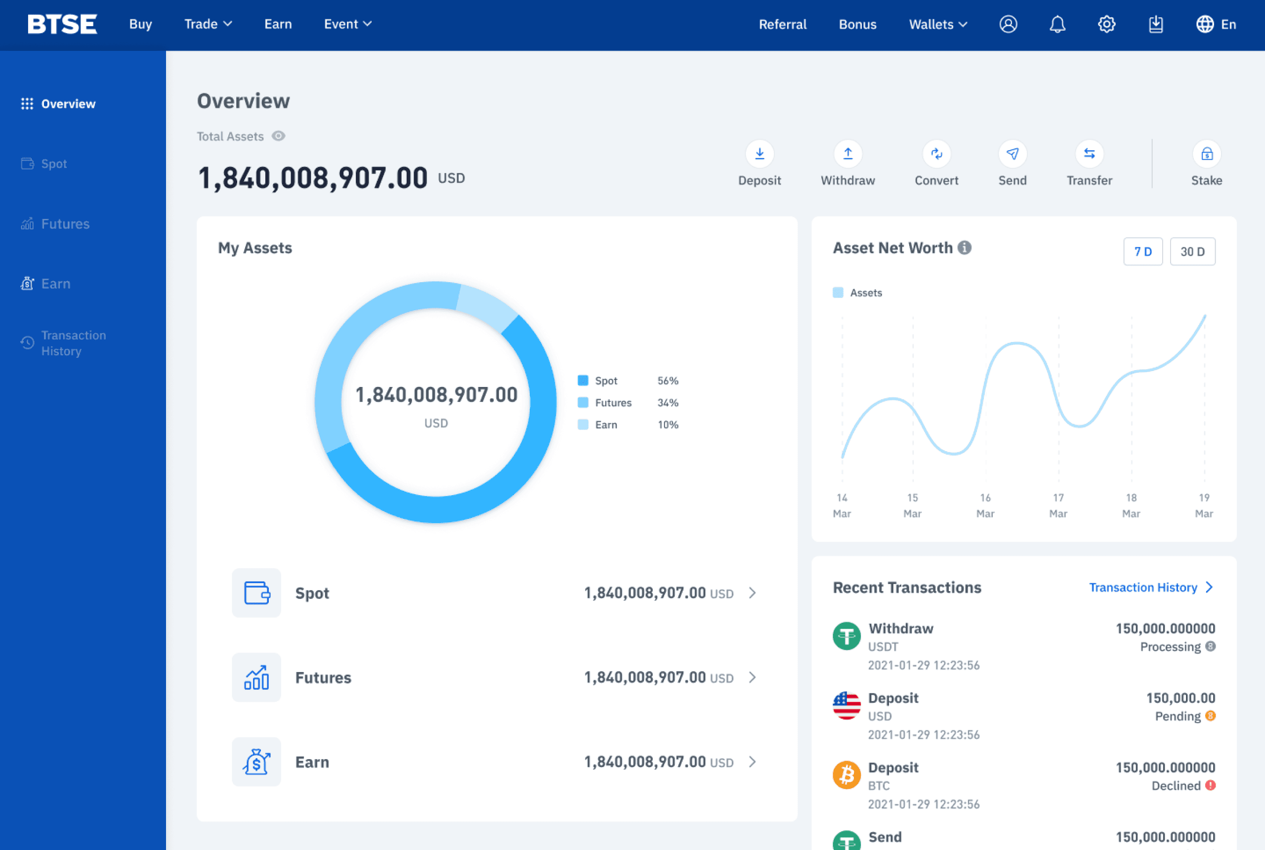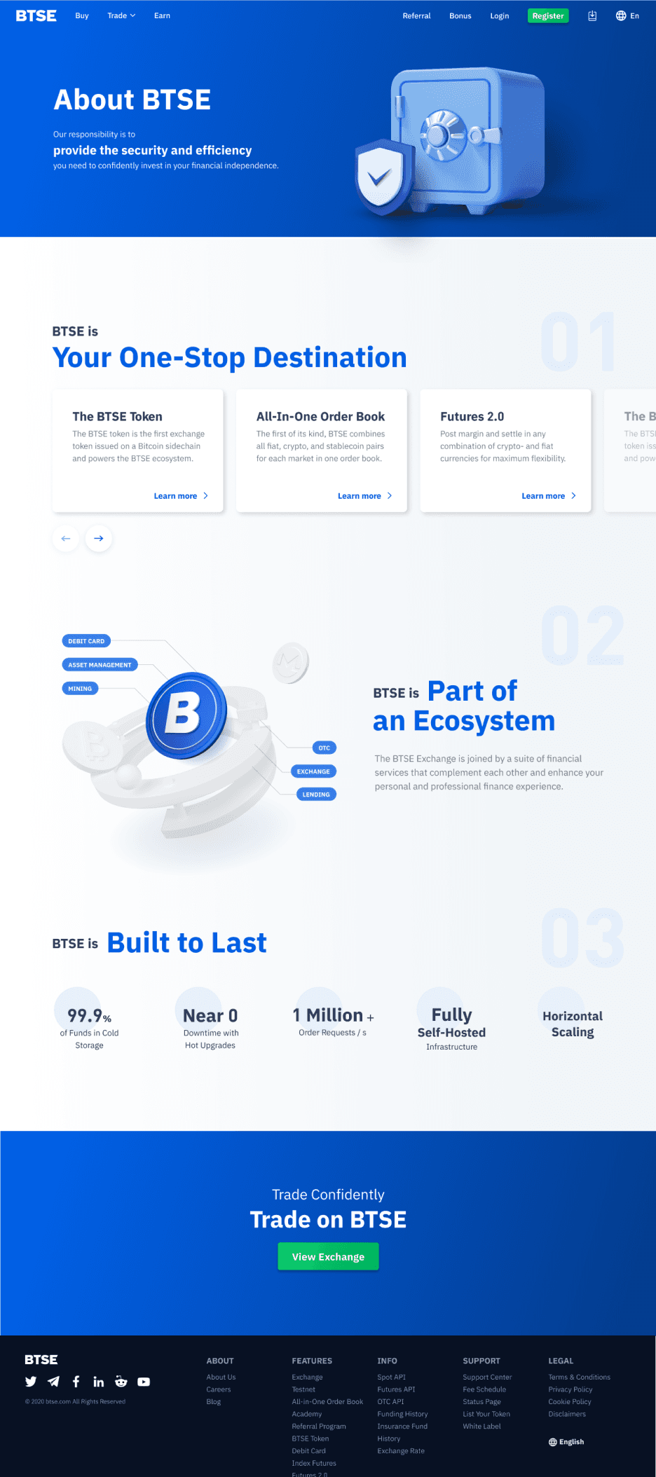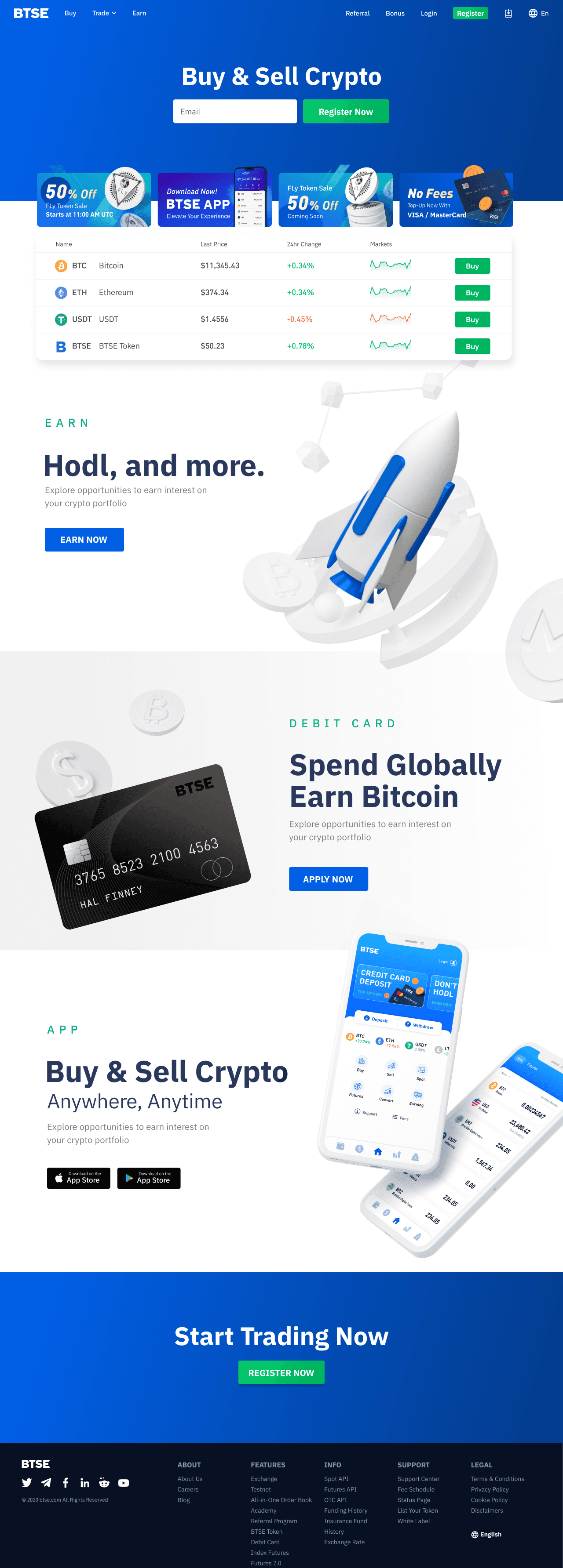 Maintained the original blue tone and utilized high saturation levels of blue as the BTSE brand color. Hope to convey a reliable brand image to customers, leading change and innovation in the blockchain industry.