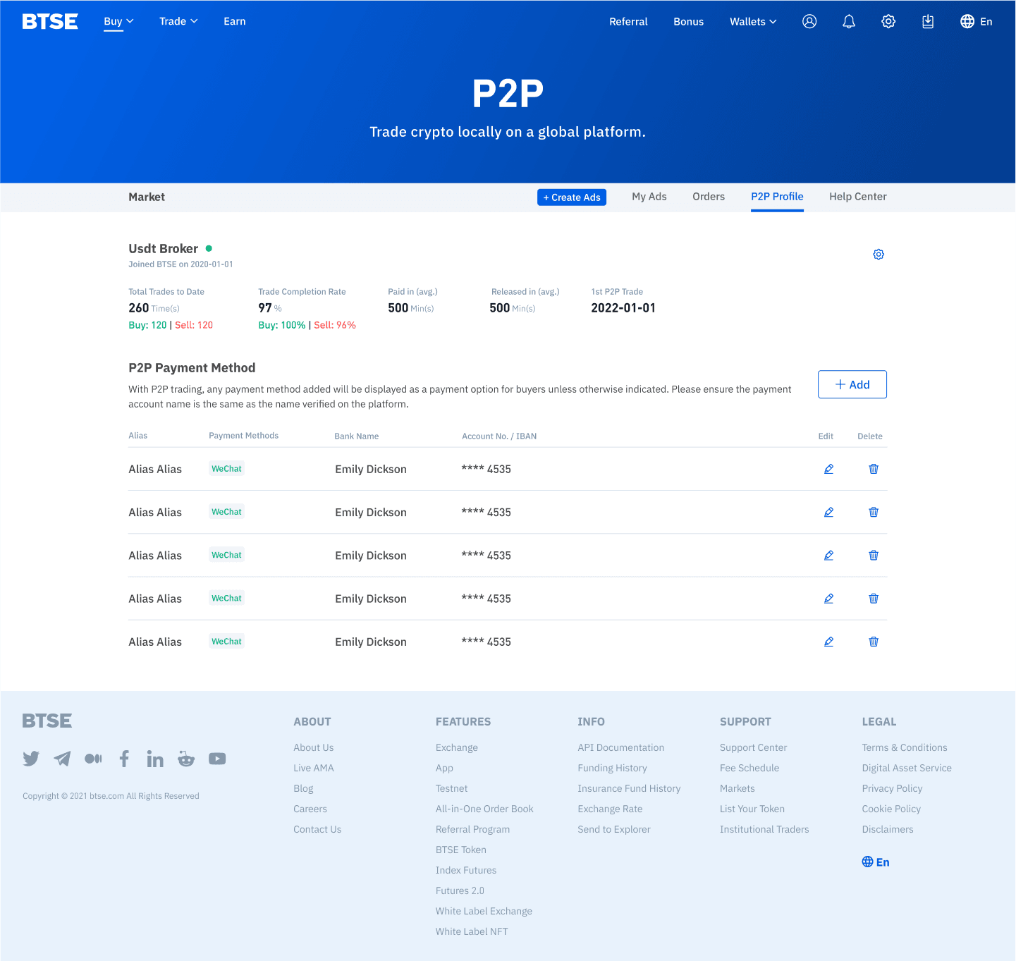 BTSE, a leading cryptocurrency exchange listed in the top hundred in the market. Established around 2019. Its primary services focus on crypto futures and spot trading.